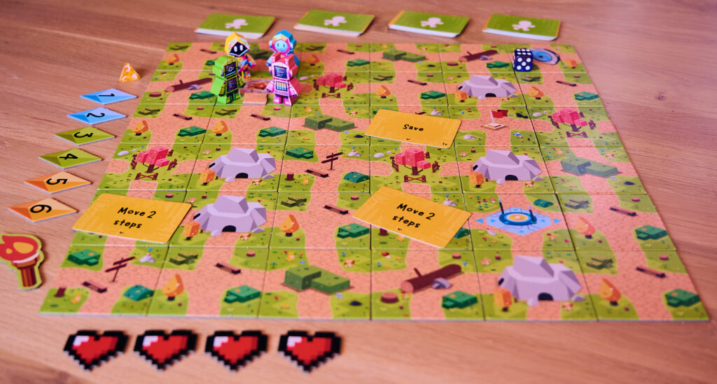 Die Spieler starten mit dem Expeditionsleiter und lösen ihre Codes aus. Schließe die Herausforderungen ab, sammle Codekarten und rase ins Ziel!